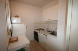 Séjour coin cuisine : plaques-électriques - four - micro-ondes - lave-linge - TV - réfrigérateur/congel - lave-vaisselle - vaisselle pour 6 personnes.